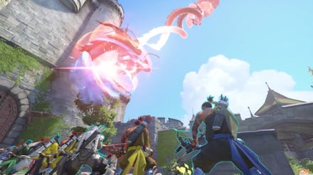 My favorite part is when a line of Hanzos fire their ultimates into the sky, one by one, creating a seemingly endless spiral of spirit dragons flying through the air towards the sun.