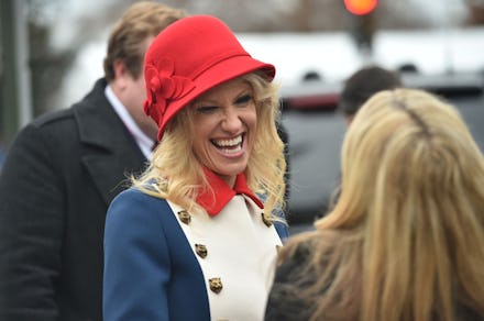 Conway showed up to the inauguration festivities not dressed like Uncle Sam, but more like Aunt Sam. According to Time, she referred to the red, white and blue coat as "Trump Revolutionary wear."