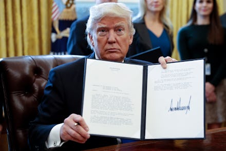 Trump signs an executive order in favor of continuing construction on the Dakota Access and Keystone XL pipelines.