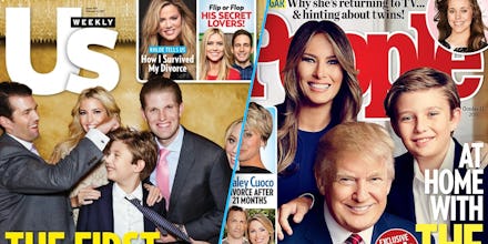 Who knows if the Trumps are agreeing to this sort of treatment, or if they even approve of these headlines. But one thing's for sure: We are living in unprecedented times, and these magazines are eating it up — and cashing in on it in the process.