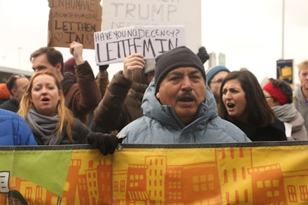 Amid reports of dozens of others including refugees and visa holders being detained at the airport, the New York Immigration Coalition asked for activists to stage a protest outside JFK Terminal 4 on Saturday morning. By early afternoon, according to Mic's Jack Smith IV, at least 250 demonstrators had arrived, with the crowd continuing to grow.