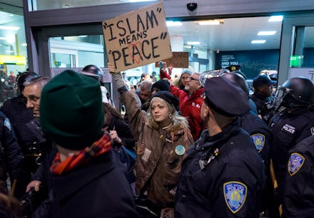 The executive order barred people from Iraq, Syria, Iran, Sudan, Libya, Somalia, and Yemen from entering the United States for 90 days. The chaotic roll-out of the order made its implementation confusing over the weekend; legal permanent residents of the U.S. were detained at airports, but officials have since said the ban does not apply to green card holders.