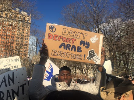 Over the weekend, protesters crowded international arrival gates at more than a dozen airports, amid reports that Trump's executive order, signed Friday, had stranded visa- and green card-holders and refugees at Customs and Border Protection counters. More than a hundred travelers from Muslim-majority countries — Iran, Iraq, Libya, Somalia, Sudan and Yemen — were reportedly detained at airports, suggesting that the president's order was, as he promised during his campaign, a Muslim travel ban.