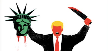 On the cover of the magazine's Feb. 4 edition, Trump is depicted as a terrorist who has beheaded the Statue of Liberty — the American symbol that has welcomed the world's "tired masses, yearning to be free" to the New York City harbor for more than 130 years.