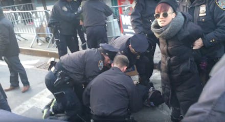 One of the people at the scene, Jack Curious, a transgender man who had been speaking with the protesters, told Mic that he saw police zero in on the woman of color in the group, put their hands on her shoulders and ask for her ID. Curious also wrote about the incident on his Facebook and identified the woman held down by police as Atta in a video he provided to Mic.