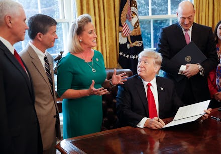 "No unaccountable Washington bureaucrats should get in the way of hardworking Americans and their ability to make financial decisions that work best for their families," Hensarling said outside the White House shortly after the memo was signed.