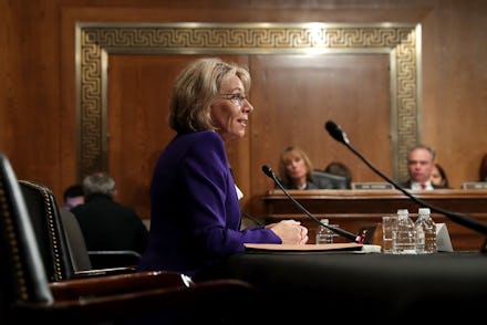But it was all for naught. The Senate Republicans all rallied around DeVos despite the staggering lack of preparedness she displayed during her confirmation hearing. At her hearing in January, Sen. Al Franken (D-Minn.) asked DeVos for her thoughts on "growth versus proficiency" in measuring student progress ("growth" meaning how much students improve, and "proficiency" meaning whether they meet a certain standard deemed proficient).
