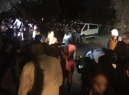According to AZCentral, about 200 gathered at the protest, which was organized by Puente Arizona. The group gained notoriety during the 2016 presidential campaign when it blocked roads to a campaign rally for Donald Trump. A total of seven people were arrested Wednesday night, including one man who tied himself to one of the van's front wheels.