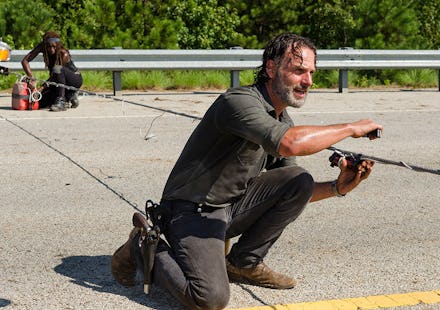 If you've seen the episode, you know exactly what we're referring to. Rick and the group took a highway pitstop to snag some dynamite wrapped over steel wire — then zombies show up. One thing leads to another and soon Rick and Michonne are re-enacting the opening scene of Ghost Ship.