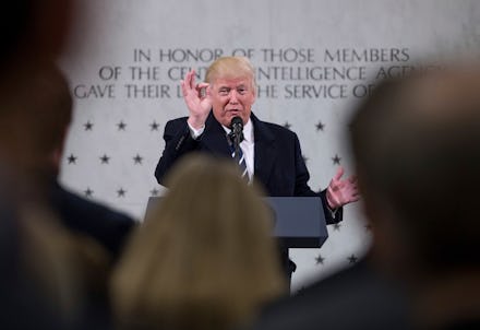 The day after Trump assumed the presidency, he gave a rambling speech at CIA headquarters in which he blamed the media for "[making] it sound like I had a feud with the intelligence community."
