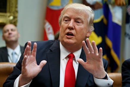 During the campaign, Trump claimed he "could stand in the middle of Fifth Avenue and shoot somebody, and I wouldn't lose any voters." And indeed, he has proved shockingly — and frustratingly — durable so far, somehow weathering scandal after scandal, gaffe after gaffe after gaffe, and living to tweet another day.