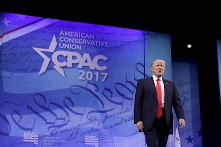 Unwitting audience members at the Conservative Political Action Conference waved Russian flags emblazoned with President Donald Trump's name as Trump delivered a speech Friday before the gathering of conservative activists.