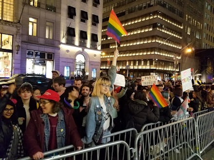 Another protester, Liz Dalton, told Mic: "I'm mostly concerned that [with] Donald Trump ... there's really no sense that policy matters, that word is bond, that really you should honor what you say because people are depending on the truth of you. I would really put nothing past this administration setting us back."