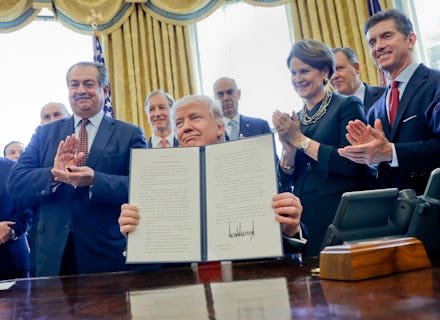 The immigration and refugee executive order Trump signed back in January, a de-factor "Muslim ban" that forbid Syrian refugees and immigrants from seven majority-Muslim countries from entering the U.S., was blocked by a federal judge in February. Days later, a panel of three appellate court judges upheld the block. Despite Trump's response to the panel's decision on Twitter — he tweeted out "SEE YOU IN COURT, THE SECURITY OF OUR NATION IS AT STAKE!" — his administration did not pursue an appeal to the Supreme Court, and instead began to hint at the possibility of writing a new order, CNN reported at the time.