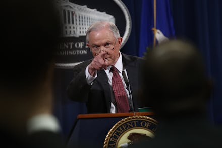 "I never had meetings with Russian operatives or Russian intermediaries about the Trump campaign," Sessions said at the news conference. "And the idea that I was part of a 'continuing exchange of information during the campaign between Trump surrogates and intermediaries for the Russian government' is totally false. That's the question that Sen. Franken asked me during the committee hearing."