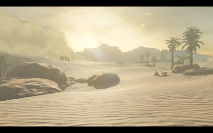Rent a sandseal — the animals that replace horses in the desert — from the shop near the northern exit after chatting with the guard outside. Ride your sandseal into the valley and look for flags draped all over the place: that's how you'll know you're in the right spot.