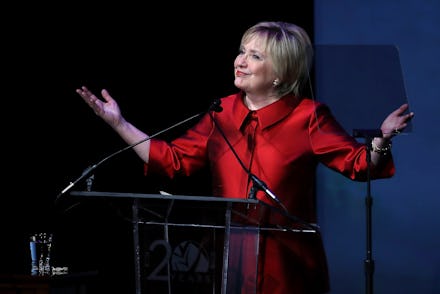Then later that night, at the Vital Voices Global Leadership Awards, Clinton and her new hair made a more formal debut, with Clinton making a speech in a sharp red jacket, naturally, with her hair a bit more coiffed.