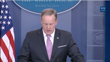 White House press secretary Sean Spicer took to the podium Friday for his daily press briefing. But something was amiss as Spicer touted the work of President Donald Trump.