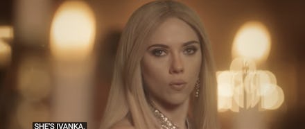 In a spoof ad for a new Ivanka-branded perfume called Complicit, SNL neatly summarized the first daughter's vague, but substantial, behind-the-scenes role in her father's administration. Host Scarlett Johansson plays Ivanka, dressed in a shimmering evening gown and floating through an opulent golden hall that recalls the ostentatious insides of Trump's own gilded penthouse.