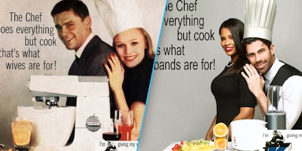 "Independent and empowering women are the norm," Ferroni told Mic in a video message. "I thought it would be so interesting to update these ads for the modern women. So we picked six of these ads, the most absurd ads, and we basically flipped the script."