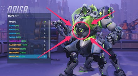 Genji's trapped, fragile robot body seems to only make an appearance in two of Orisa's legendary skins, "carbon fiber" and "protector," which you can see in the video below.