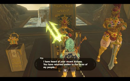Although you've already fought your way through the Yiga Clan Hideout and defeated Vah Nabooris in Legend of Zelda: Breath of the Wild, Queen Riju of the Gerudo is pretty reticent to give up the thunder helm to Link. If you want this swank piece of armor that will grant you the "Lightningproof" ability, you're going to have to show Riju that you're a friend of her people.