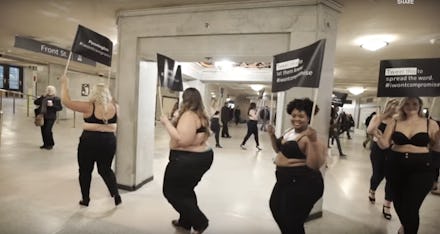 Plus-size women stormed a train station in just bras and jeans to promote body positivity