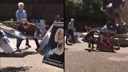 "I was walking to class and saw the pro-life people there and then saw this guy walk over there and start attacking the signs," she told the Independent, adding that abortion rights opponents — "extremists," as she put it — show up on campus all the time.