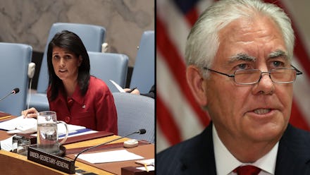 Earlier Sunday morning, Nikki Haley — the U.S. ambassador to the United Nations — told CNN's State of the Union that "getting Assad out" of power was a "priority." However, she did not say force should be used toward this end, instead describing a "political solution" that removes the strongman.
