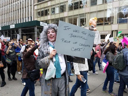 A Tax March protester outside Trump Tower who gave her name as Veronica told Mic, "I don't like the conflicts of interest, and I don't like the overt stealing. I don't like the destruction of the environment. I don't like women and minorities being second-class citizens. Should I go on?"