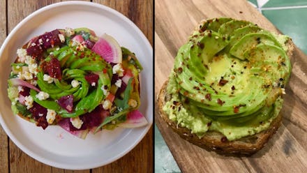 Here's "Beet and Blue," a new toast featuring beets and blue cheese sprinkled on an avocado rose: