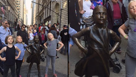 Three anonymous little girls just reminded us all why representation, even in the form of bronze statues, matters.