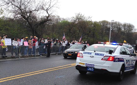 "That he agreed to come here shows the full strength of the federal government is for eradicating MS-13," said King, a member of the House Homeland Security Committee. "They should be on their knees thanking him — not out there protesting."