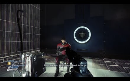 If you follow your objectives, eventually you'll be able to watch a video briefing of yourself, and canny players will notice the video you're watching takes place in the same Debriefing Room you were in earlier. Look to the left-hand side of the video and you'll see the whiteboard, which now clearly has the code "5150" written on it.