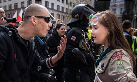 Last week, the internet found a hero in Lucie Myslíková, a 16-year-old Czech girl scout who was photographed going head-to-head with a far-right extremist at a protest in Brno, Czech Republic, on May 1.