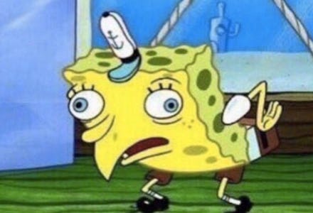 Of course, anyone who's been through middle school knows that the exaggerated voice in play here has dark roots. Indeed, before the recent wave of call-and-response memes, this SpongeBob image was most often used in offensive jokes made at the expense of "special ed" or autistic kids. Plenty of people today think of him as "Retarded SpongeBob," with others finding the meme problematic for exactly that reason. Which is how this happened: