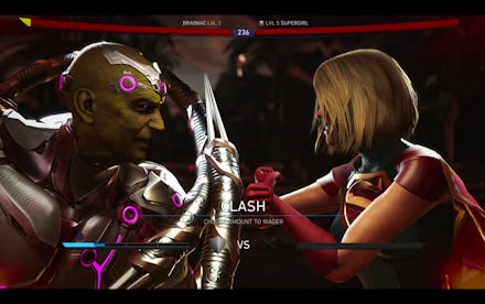 In the first Injustice game, there was a mechanic called clash that can help a losing player turn the tide of battle. This mechanic carried over to Injustice 2. Although it's called a clash, it's far more like betting.