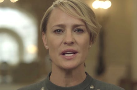 In the latest trailer for season five of House of Cards, Claire looks into the camera and delivers an address to the American people that seems to be a ploy — the Underwoods want their administration to appear trustworthy to citizens by any means necessary: