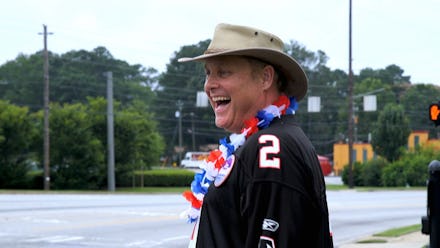 In the final hours before that election, which Ossoff, a Democrat, narrowly lost, Mic trailed Faw as he campaigned for Ossoff and explained why he does not support the president. Faw wore a cowboy hat and Atlanta Falcons jersey the day before the election, along with a button that read, "Just because I'm a redneck doesn't mean that I voted for that son-of-a-bitch."