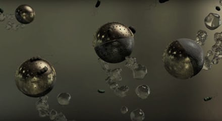 The robots are able to move around and destroy bacteria themselves. Magnesium in the bots react with water, creating hydrogen bubbles that literally propel the “small armies” of “microbots” through the water. The E. coli bacteria sticks to the microbots’ gold layers, then a layer of silver nanoparticles destroys that bacteria. In tests, these bots killed more than 80% of E. coli in water samples.