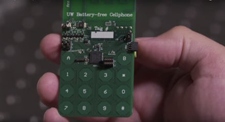 Cell phones have advanced a lot in just a few years, but we’re still living in the age of portable battery packs and constantly searching for a free outlet at a coffee shop to recharge. Now, a group of computer scientists have a phone prototype that has no battery at all — instead, it gets its energy from ambient radio signals and light.