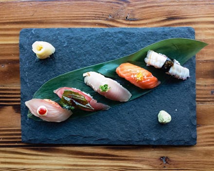 “We’re not going to order exotic fishes and staples like farmed salmon, hamachi or unagi,” Casson said, explaining these species come with questionable fishing practices or they’re borderline endangered species, like unagi. His team focuses on the ingredients that fit their values — like halibut caught off the coast of California — and use them to the best of their ability. They’ve attracted a clientele that “vibes with this approach,” he said.