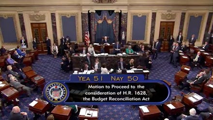 The motion to proceed, which officially starts debate on a bill, passed the Senate 51 to 50, with Vice President Mike Pence casting the tie-breaking vote.