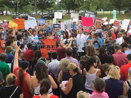 “I’m from the Brentwood community and I’m here to tell Trump that he can’t use what’s going on in this community to help support what he’s doing,” Villanueva told Mic’s Celeste Katz. “Both my parents came from El Salvador and they came here to give me and my brothers and sisters education and a better life.”