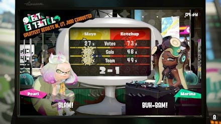 Players participating in Splatfest had to choose one of two teams. What made Team Mayo’s victory so odd was that 73% of players chose Team Ketchup, while Mayo only got the allegiance of 27%. Somehow though, Mayo managed to slip past Ketchup with 52% Solo wins vs. 48%, and 51% Team victories against 49%.