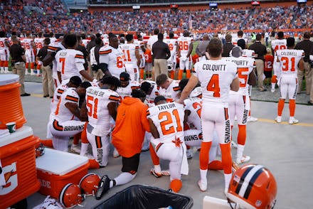 “It saddens me that, in 2017, we have to do something like that,” Browns tight end Seth DeValve said after kneeling before Monday’s game. “The issue is that [the U.S.] doesn’t provide equal opportunity to everybody ... and I wanted to support my African-American teammates today.”