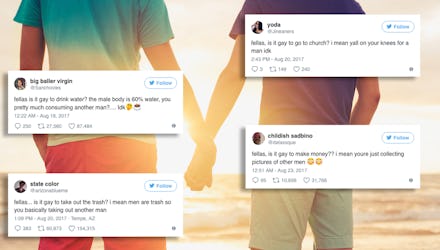 If you haven’t met this guy, the good people of Twitter certainly have. The emerging “Fellas, Is It Gay” meme is a hilarious send-up of our culture’s toxic masculinity and underlying homophobia.