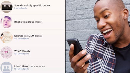 In many of the groups I’m in, people share and critique posts from elsewhere on social media. Those include “I don’t think that’s science,” “sounds fake but ok,” “it turns out you can just put words in any order you want” and “i feel personally attacked by this relatable content.” Others are related to a specific interest, like “Who? Weekly,” a group for listeners of the podcast of the same name, and “Dogspotting,” a place to post photos of dogs you see around.