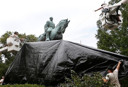 The protests have taken place largely in response to Charlottesville’s plan to remove the town’s Confederate statues, which are currently shrouded by black tarps. Though the city voted in April to remove a statue of Robert E. Lee, the New York Times noted, the town was then issued a six-month injunction halting its removal in May, after a lawsuit was filed against the city by the Sons of Confederate Veterans and other individuals and groups.