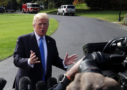 The rambling comments came as he was about to board Marine One — and a day after he engaged in a nasty public feud with Sen. Bob Corker (R-Tenn.) and was called out on the Senate floor by Sen. Jeff Flake (R-Ariz.).